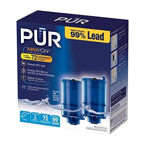 PUR PLUS Faucet Mount Replacement Filter 2-Pack, Genuine PUR Filter, 3-in-1 Powerful, Natural Mineral Filtration, Lead Removal, 6-Month Value, Blue (RF99992)
